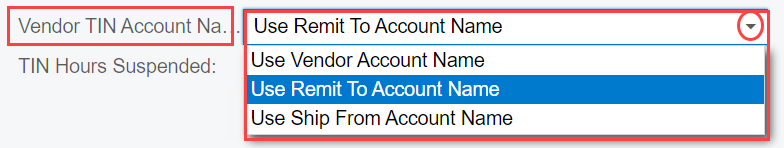 - Select which Vendor TIN Account Name you want associated with your vendor record. Acumatica has more than one location for a vendor’s name, so we allow you to configure which one to use with the IRS.