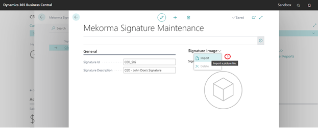 The next step is to import your signatures into your Microsoft Dynamics 365 Business Central application so that Mekorma Electronic Signatures can use them.