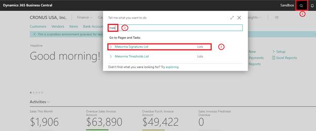 - Choose the Magnifier that opens the Tell Me feature icon and type mek. Select Mekorma Signatures List from the pages and tasks being displayed.