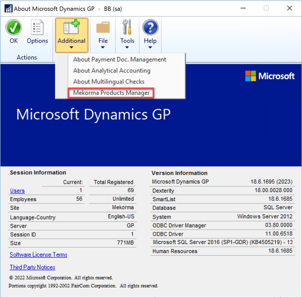 - In Dynamics GP, open the About Microsoft Dynamics GP window.