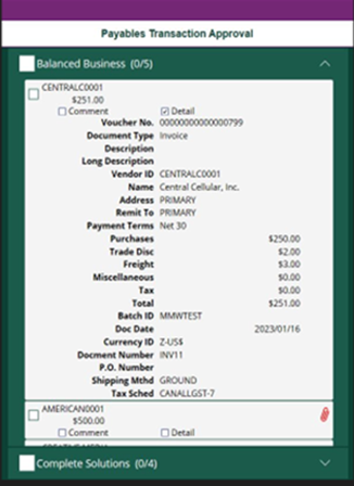 - Payables Transaction Approval Details