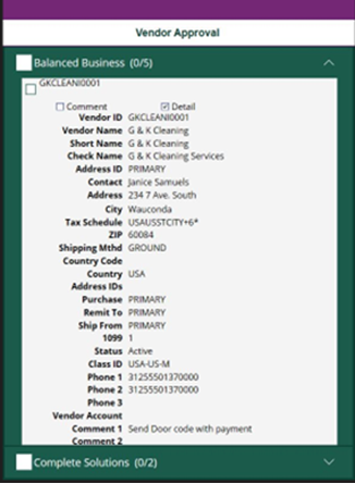 By accessing the details of a transaction or vendor request, users can view pertinent information related to the request. Use the checkbox to toggle details on and off.