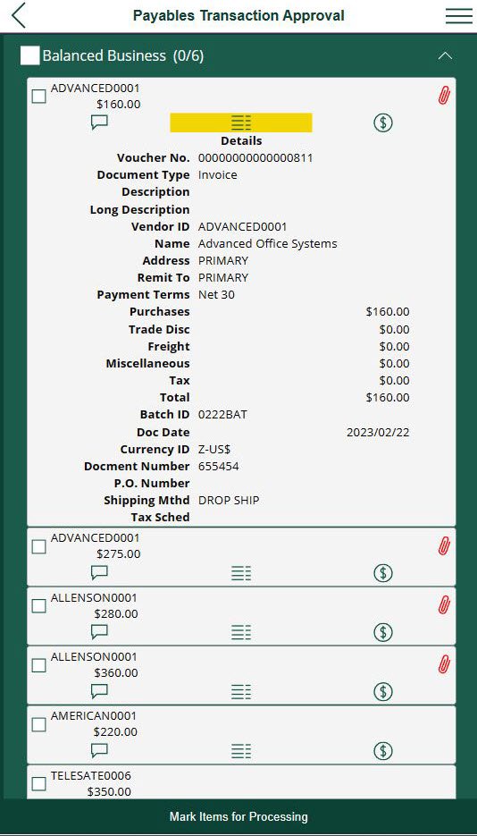 - Payables Transaction Approval Details