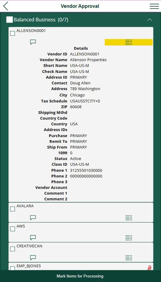 By accessing the details of a transaction or vendor request, users can view pertinent information related to the request. Use the checkbox to toggle details on and off.