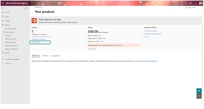 After you purchaser the Power Apps licenses, you need to assign user licenses to approvers and administrators. To assign user licenses, follow these steps via the Microsoft 365 admin center: