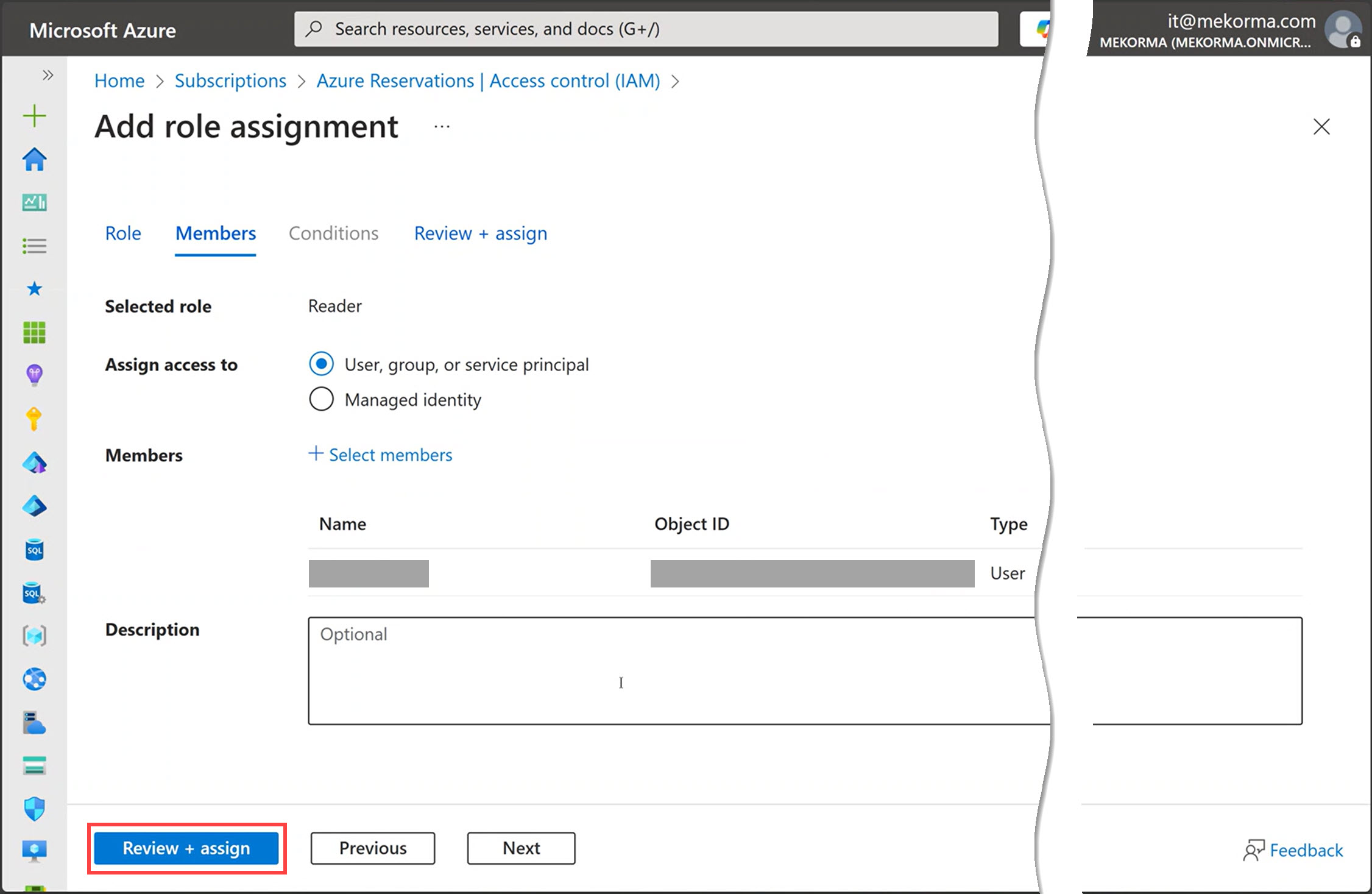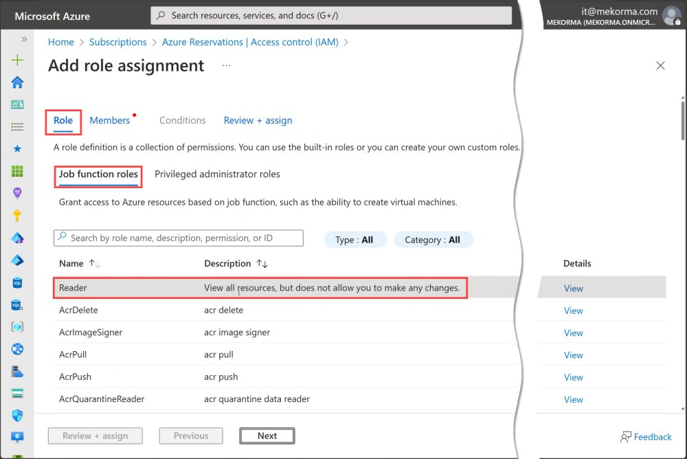After creating a service account, it is important to assign the Azure Reader role and associate Mekorma’s Partner ID (MPN ID) with the account. This ensures that Microsoft can accurately attribute customer impact and engagement to Mekorma through the Partner Admin Link (PAL).
