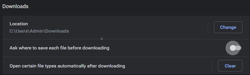 1. Scroll to Downloads. Choose the folder location path where the encrypted Mekorma Check Print file (.mcp) will be written at print time.