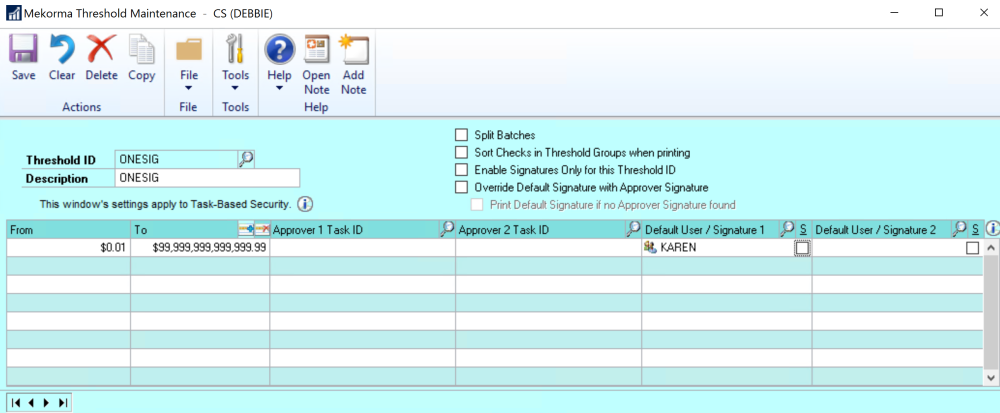 Configure One or Two Signatures for all Dollar-Value Amounts