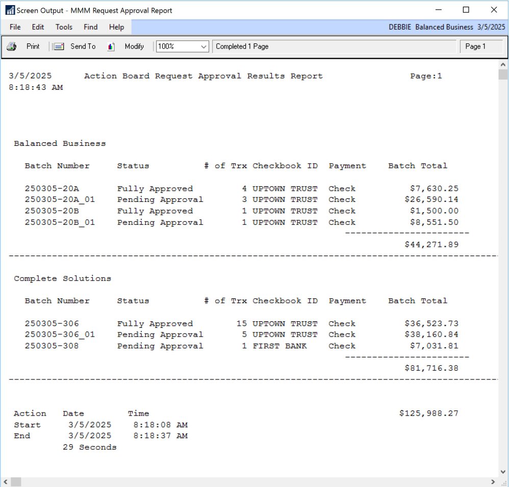 - You can view the Action Board Request Approval Results Report to see the status of each batch for which you requested approval.