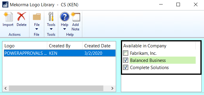 - If you would like the logo to be available in more than one company, mark the box next to additional companies in the Available in Company column.