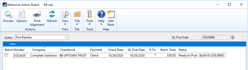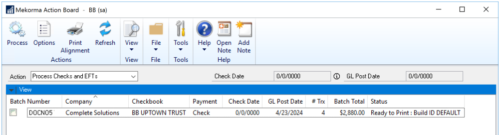 If you are using Mekorma’s Remote Payment Services, you can process remote payment batches using the Action Board.