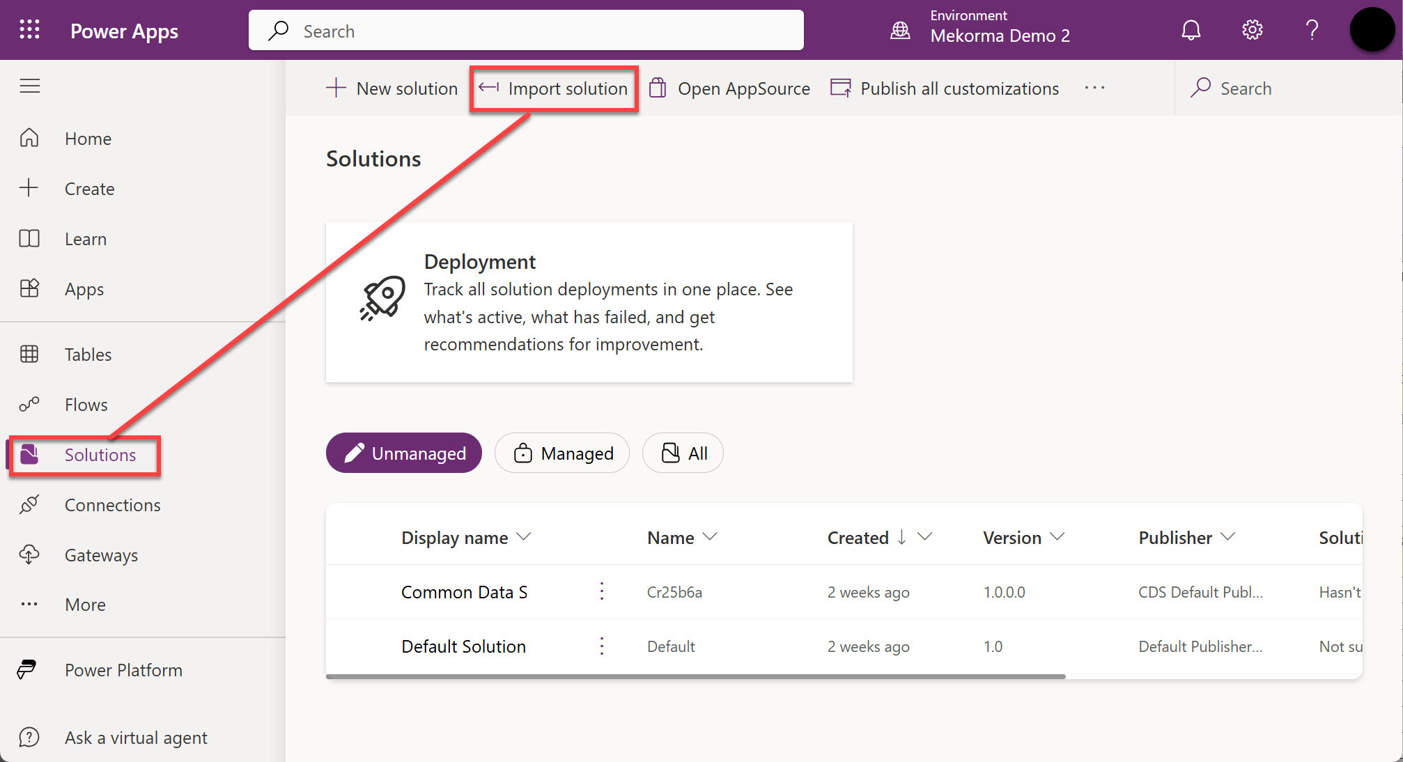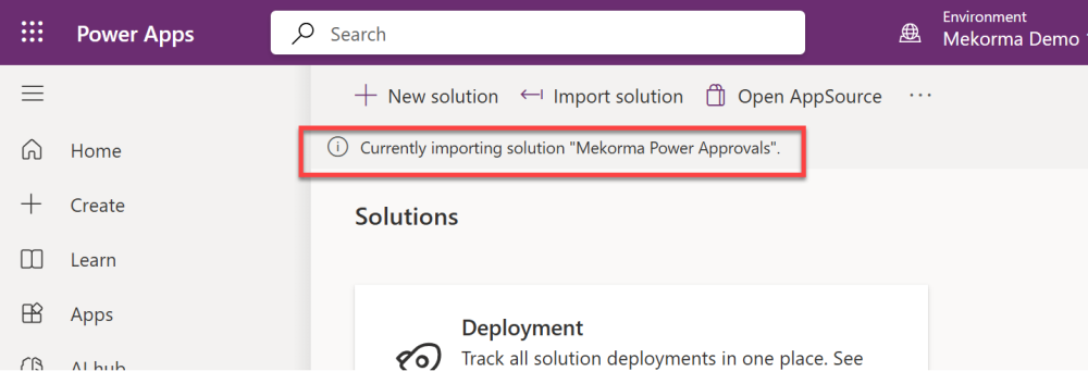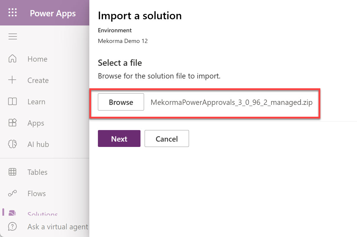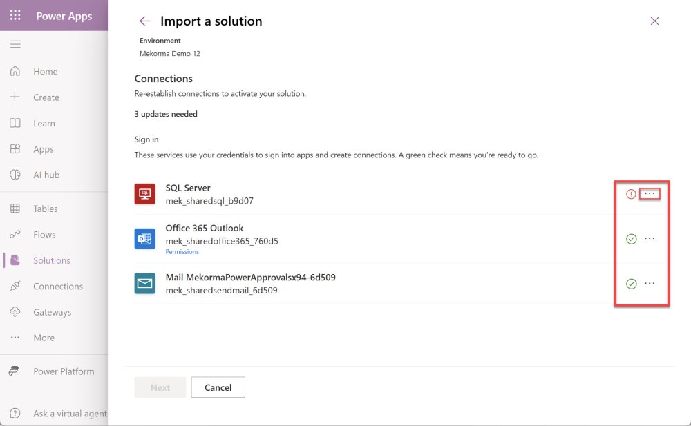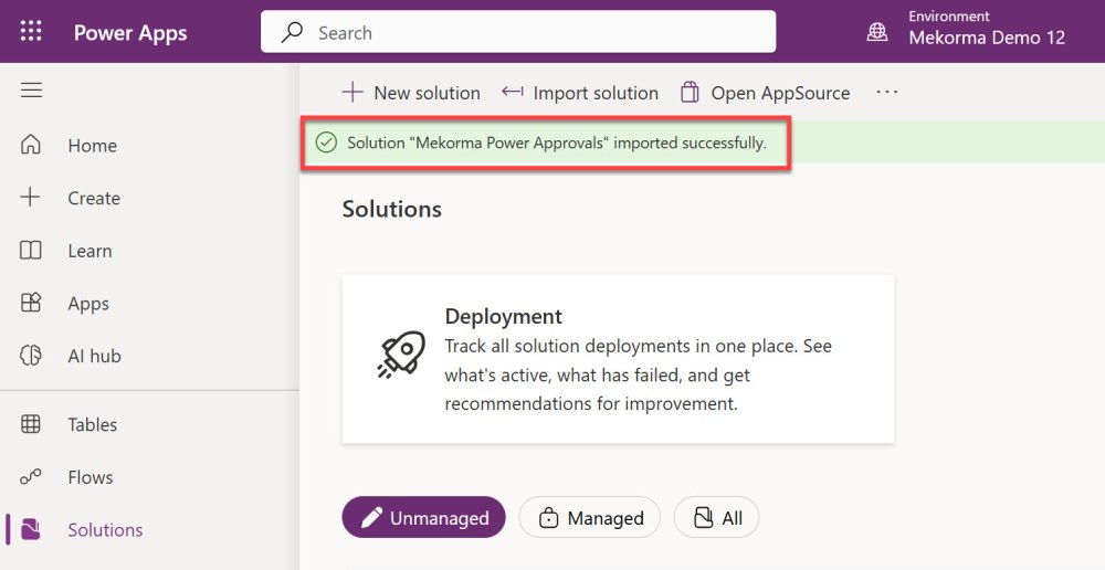 Use the following instructions to import the Mekorma Power Approvals solution.