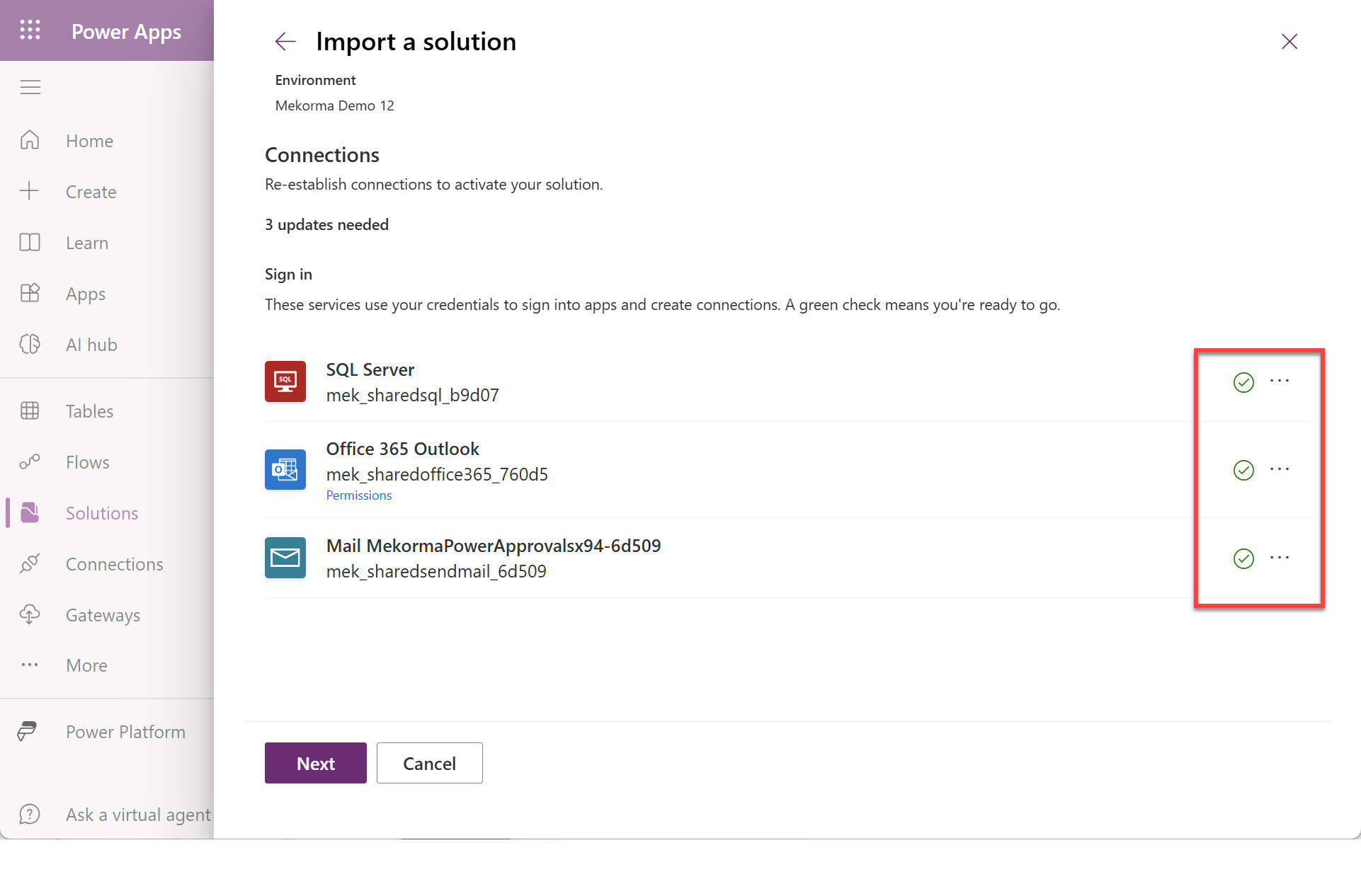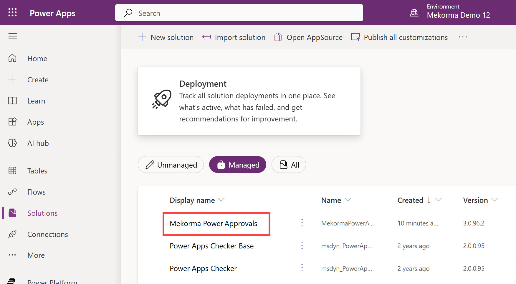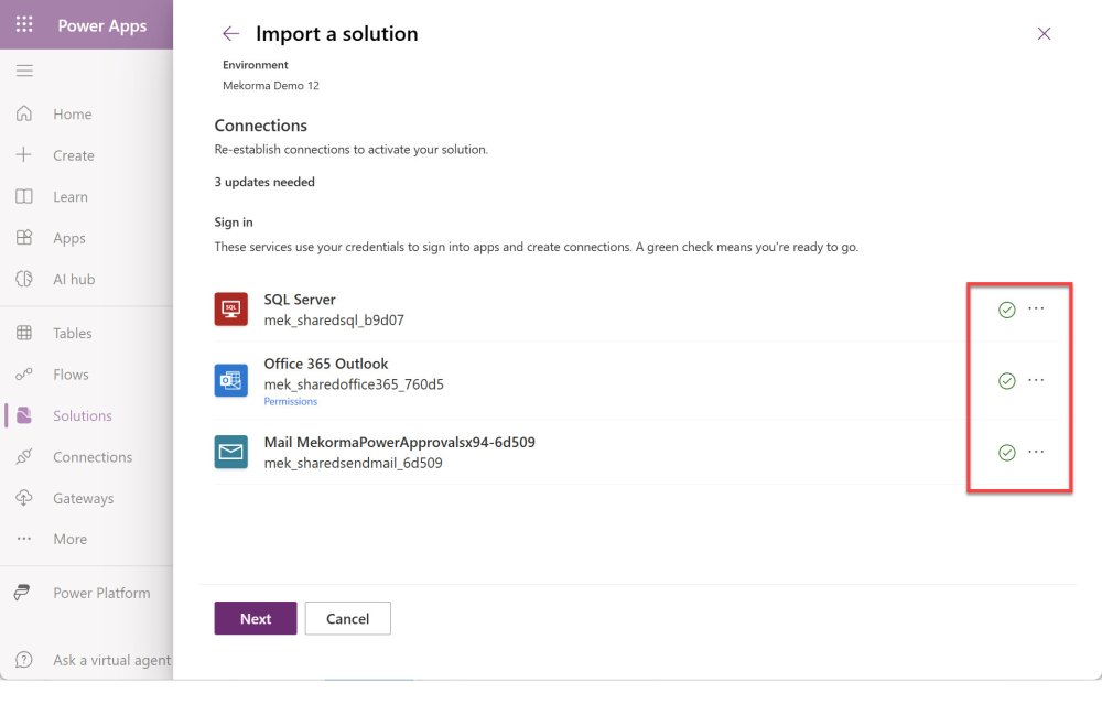 Use the following instructions to import the Mekorma Power Approvals solution.